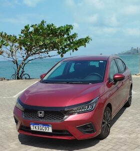 O Honda City na sua configuração topo da gama Touring é a mais completa no pacote de equipamentos e tem um visual para quem deseja um carro de design tradicional e com as novidades do mercado, como faróis e lanternas com LED, grade ao estilo colmeia e parachoques proeminentes. Nada demais nem nada de menos. Tem sistema de ar-condicionado digital automático, carregador de celular sem fio, rodas aro 15 diamantadas, faróis de neblina, sensor crepuscular, além de chave presencial, partida por botão e saídas de ar traseiras do sistema de ar-condicionado.