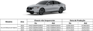Consumidor atento fica ligado na lista de recall antes de comprar um carro. Todo mês tem fabricante anunciando defeito na fabricação de veículos produzidos no Brasil ou importados para o mercado nacional. É o caso da Honda Automóveis do Brasil que está conocando os proprietários dos automóveis relacionados a seguir a comparecerem a uma das concessionárias autorizadas da marca para realizar a atualização de software do módulo de gerenciamento do sistema de propulsão. Os veículos envolvidos foram produzidos nos anos de 2023, 2024 e 2025.