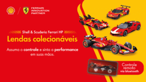 A partir de 1º de outubro, postos Shell de todas as regiões do Brasil oferecem as miniaturas “Lendas colecionáveis” da Scuderia Ferrari que unem a paixão pelo automobilismo à interatividade digital. Os modelos podem ser controlados diretamente pelo celular por meio do aplicativo exclusivo Shell Racing Legends, que também permite acessar jogo com pistas virtuais.