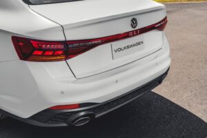 O conjunto de painel Full LED deixou o Jetta GLI 2026 mais bonito.  Na parte traseira chama a atenção o difusor na parte inferior e o aerofólio na tampa do porta-malas, ressaltando a proposta do modelo. A saída dupla de escape cromada e toda a logotipia do modelo em vermelho complementam o conjunto. Em tempo: as pinças de freio dianteiras são pintadas em vermelho.